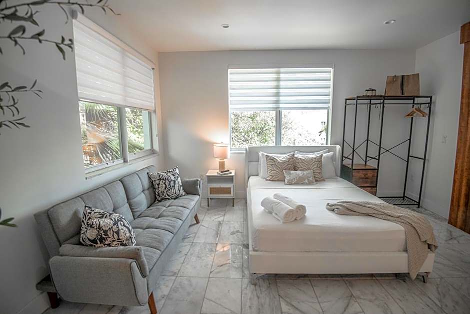 ofrece una estancia relajada en Miami diseñada para viajeros que buscan comodidad y un toque de calma junto al mar. Una entrada privada abre a espacios que se sienten tranquilos y refrescantes, mientras que una terraza y las vistas al jardín preparan el escenario para mañanas pausadas y noches estrelladas. Una cocineta, una cocina completa y menaje de cocina proporcionan opciones de comedor flexibles, y las prestaciones para no fumadores con camas extralargas y diseño insonorizado prometen noches de descanso.